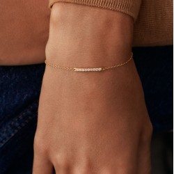 Bracelet souple en argent véritale doré 750/1000, orné d'une petite barre rigide pavée d'oxydes de zirconium
