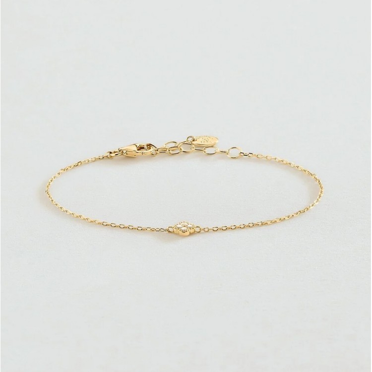 Bracelet en argent 925/1000 doré à l'or 750/1000 montée d'une fleur pavée d'oxydes de zirconium.