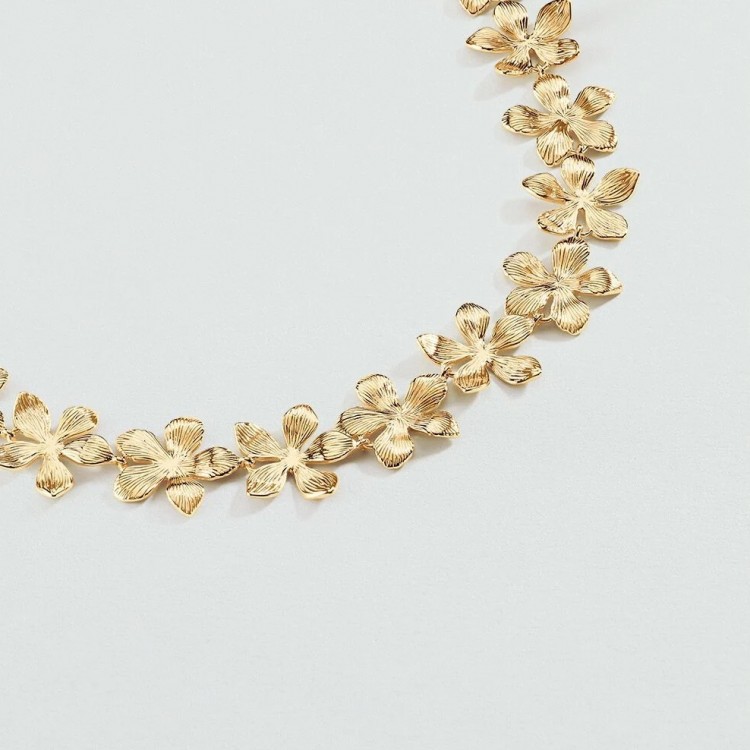Collier court en laiton doré 750/1000, multitude de petites fleurs