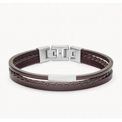 MASERATI Bracelet Homme Acier & Cuir Marron