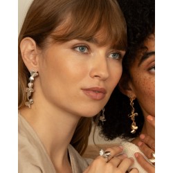 Boucles d’oreilles pendantes en forme de fleur. Finition texturée et design lumineux pour capter la lumière.