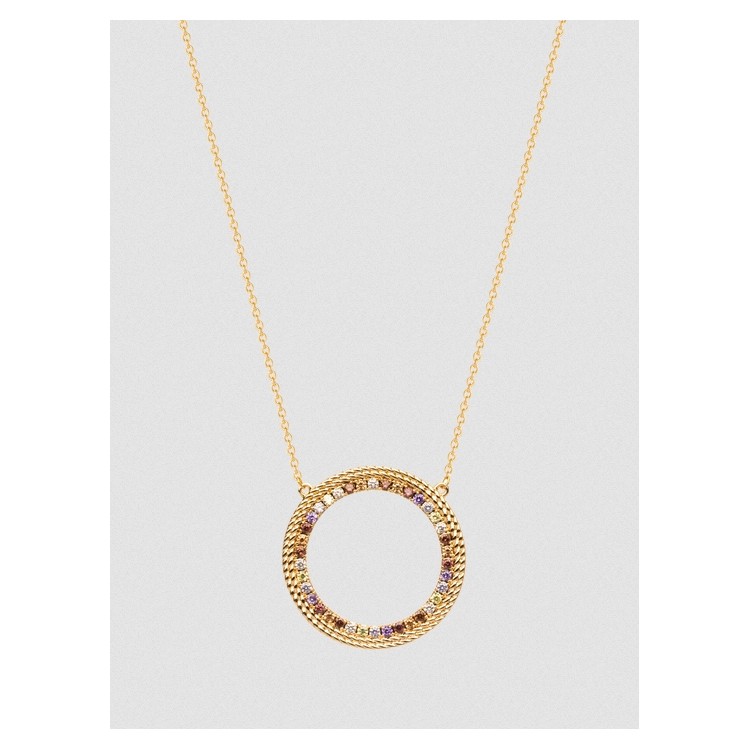 Collier en plaqué or 3 microns, serti d'oxydes de zirconium blancs, violets et champagne. et réglable de 42 à 45 cm.