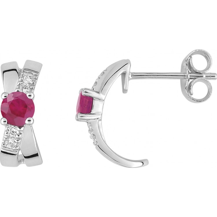 Boucles d'Oreilles Créoles Rubis Oxydes Zirconium Or Blanc 2A583GRZ