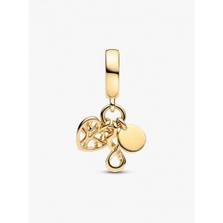 Célébrez la beauté de la famille avec ce charm pendant triple en métal doré à l'or 585/1000e. Composé d'un arbre généalogique en forme de cœur, d’un symbole de l’infini et de la gravure « family » (famille), ce bijou sym