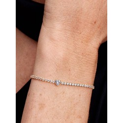 Un éclat qui vient du cœur. Ce bracelet garde l’amour au cœur de tout. Ce bracelet rivière bordé de 58 oxydes de zirconium cubiques sertis grain est orné en son centre d'une étincelante pierre en forme de cœur sertie griffes.