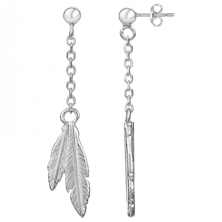 Boucles d'Oreilles Pendantes Femme Argent Plumes 70400232