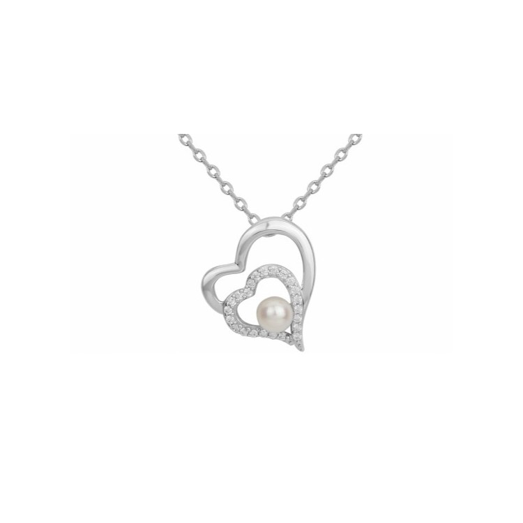 Collier Femme Argent Coeurs Perle Rose 22 Oxydes de Zirconium 70700702