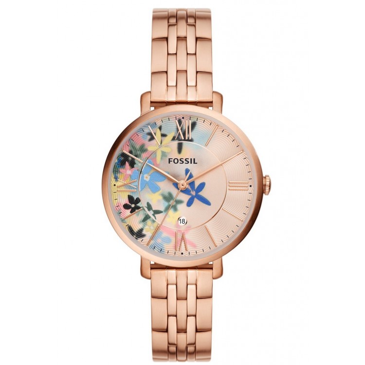 FOSSIL Montre Femme Jacqueline Acier Doré Rose & Motif Floral