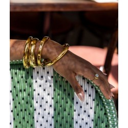 Bracelet jonc lisse en acier uni ou doré à l’or fin. Il s'ouvre grâce à un système d'ouverture aimanté, sécurisé par un petit crochet.