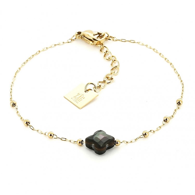 Sublimez votre style avec le bracelet chaîne "chapelet" Velasquez de Zag Bijoux. Fabriqué en acier inoxydable doré à l'or fin, ce bijou élégant est orné d'un trèfle facetté en nacre grise, apportant une touche de sophistication à votre poignet. La nacre agit sur la sécurité et le bien-être. Parfait pour toutes les occasions, ce bracelet unique complétera vos tenues quotidiennes ou habillées avec raffinement. Offrez-vous ce bijou sophistiqué ou faites-en un cadeau mémorable pour un être cher. Longueur ajustable de 15 à 18 cm.
