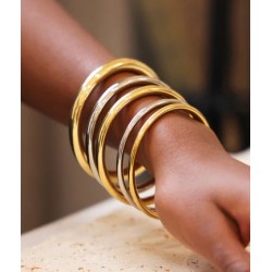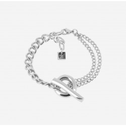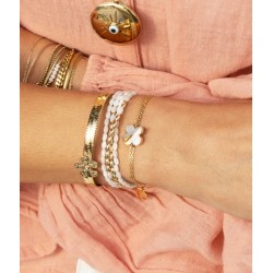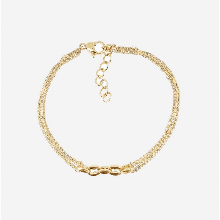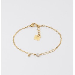 Bracelet double chaîne en acier uni ou doré à l'or fin par ionisation sur laquelle sont accrochés des petits maillons.