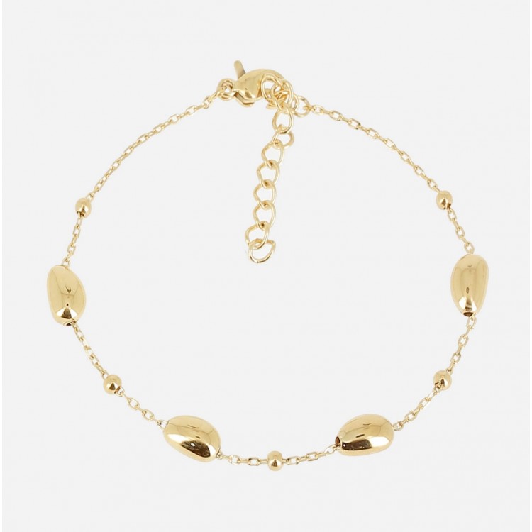 Bracelet en acier doré à l'or fin par ionisation sur lequel sont sertis des empiècements en acier en formes arrondies.