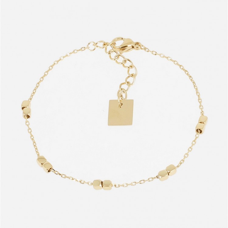 Bracelet en acier uni ou doré à l'or fin par ionisation composé de petits empiècements carrés.