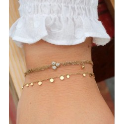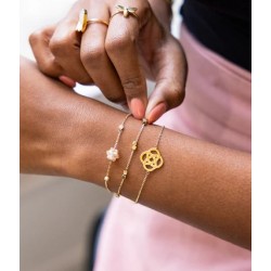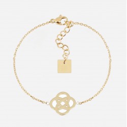 Bracelet chaîne "chapelet" en acier uni ou doré à l'or fin par ionisation, sur lequel est attachée une pierre naturelle facettée en forme de trèfle.