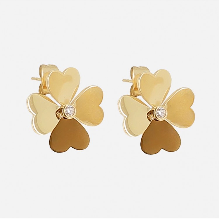 Boucles d'oreilles en acier uni ou doré à l’or fin serties d'un trèfle en acier au milieu duquel se trouve un zirconium.