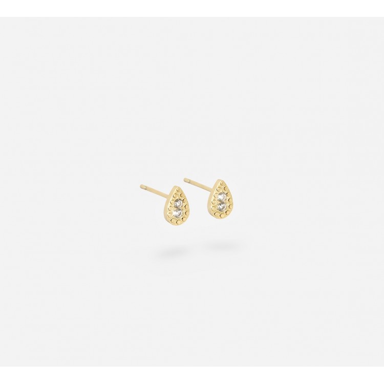 Boucles d'oreilles en acier doré à l'or fin par ionisation en forme de goutte, serties de zirconiums.