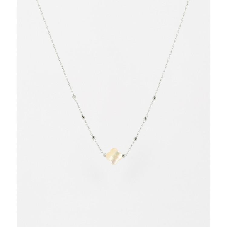 Collier chaîne "chapelet" en acier uni ou doré à l'or fin par ionisation sur lequel est attachée une pierre naturelle en forme de petit trèfle.