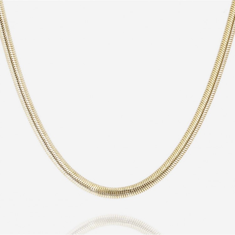 Collier formé d'une chaîne serpent en acier uni ou doré à l'or fin par ionisation.