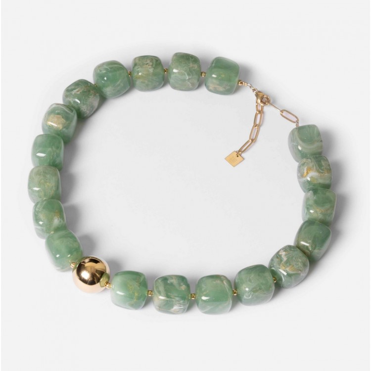 Collier en acier doré à l'or fin par ionisation parsemé de perles de résine de couleur. Il vous assurera un look bohème chic !
