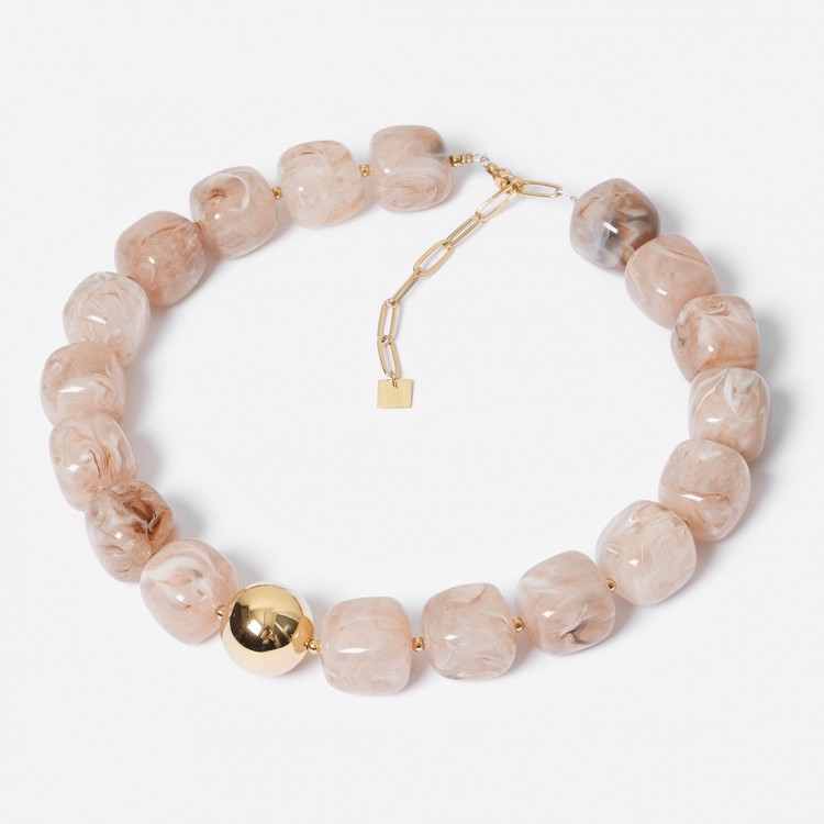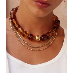 Collier en acier doré à l'or fin par ionisation parsemé de perles de résine de couleur. Il vous assurera un look bohème chic !