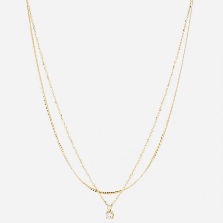 Collier double chaînette en acier uni ou doré à l'or fin par ionisation sur lequel est serti un zirconium.
