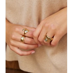Bague en acier uni ou doré à l’or fin. Cette bague se croise sur le devant grâce à deux formes arrondies qui semblent s'enlacer.
